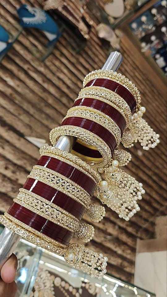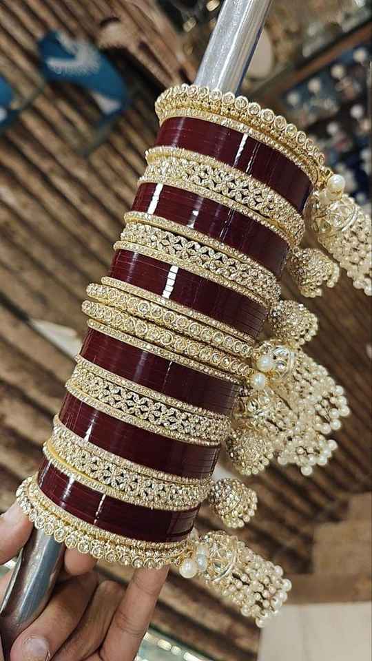 กำไลเจ้าสาวประดับด้วยหิน Kundan กำไลข้อมือสีทองเงางามแบบดั้งเดิมสำหรับงานแต่งงาน