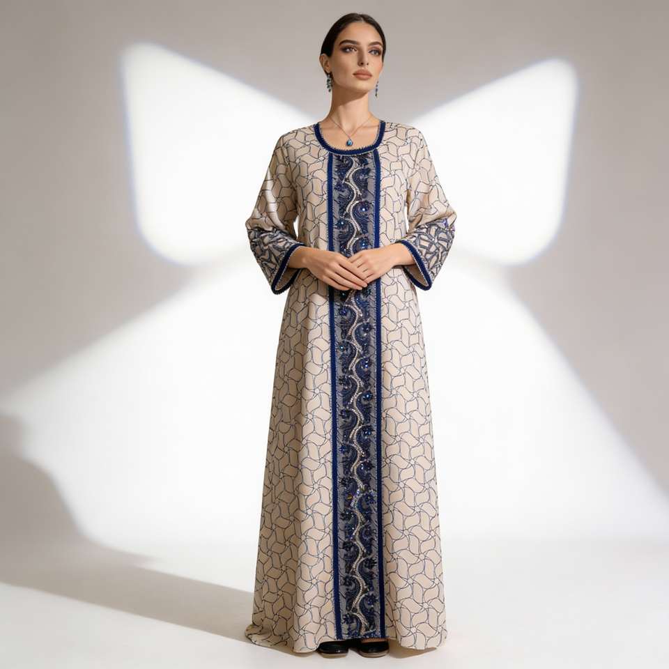 ชุดอาบายะยาวผ้าโพลีเอสเตอร์ปักลายหรูหรา คุณภาพสูง สำหรับสตรีมุสลิม ขายส่งแบบกำหนดเองได้