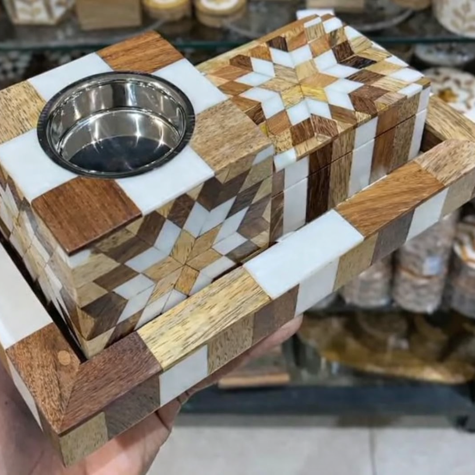 ชุดกล่องใส่เครื่องหอมบาคูร์ไม้และเรซิ่นคุณภาพสูง ดีไซน์หรูหรา พร้อมถาดอะคริลิค สำหรับเทศกาลรอมฎอนและอีด สินค้าขายดีสำหรับวางบนโต๊ะ