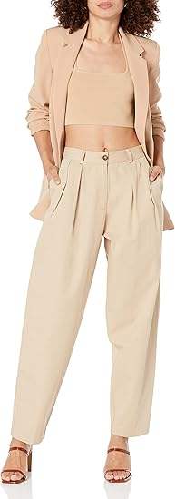 กางเกงคาร์โก้ผ้าแคนวาสทรงเอวสูงแบบจีบสำหรับผู้หญิง เอวยางยืด ทรงหลวม สไตล์ลำลองและเป็นทางการ ใส่ได้ทุกฤดู