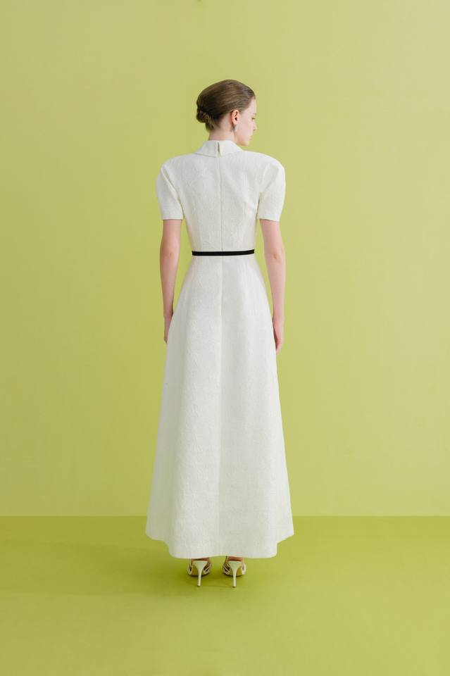 ชุดเดรสผู้หญิงทรงเอคุณภาพสูงหรูหราพร้อมช่องด้านหน้าแขนอ้วนสีดําและสีขาวชุดซาติน MIDI มดสีขาว