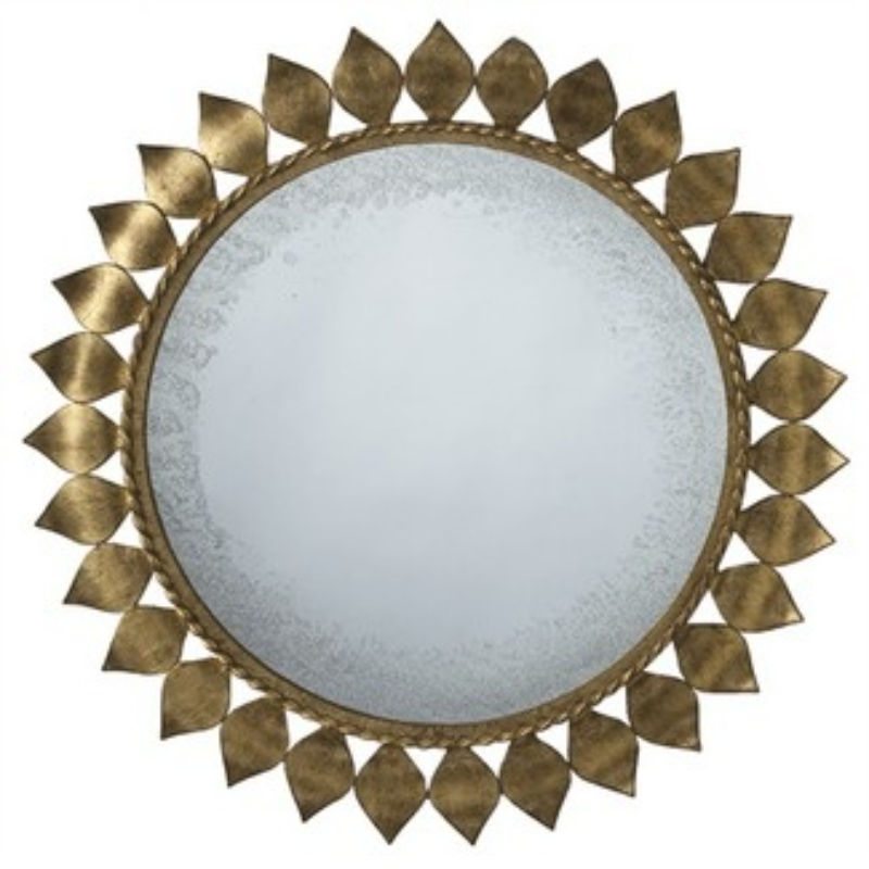 กระจกติดผนังทรงกลมตกแต่งบ้านและห้องน้ำ ดีไซน์หรูหรา กรอบสีทองโบราณ งานฝีมือ กระจกโลหะแขวนผนัง