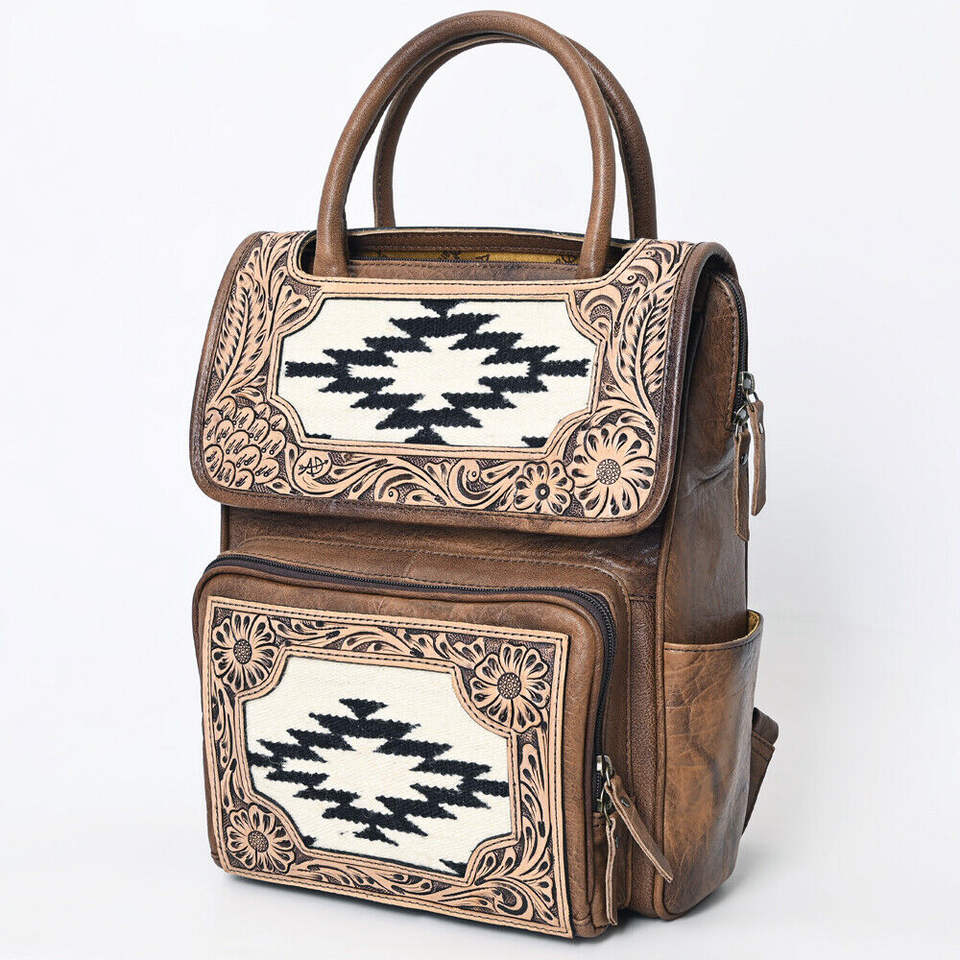 กระเป๋าเป้สะพายหลังผ้าห่มหนังวัววินเทจสไตล์ตะวันตกพร้อมพู่ทำเองได้กระเป๋าเดินทางของผู้หญิง