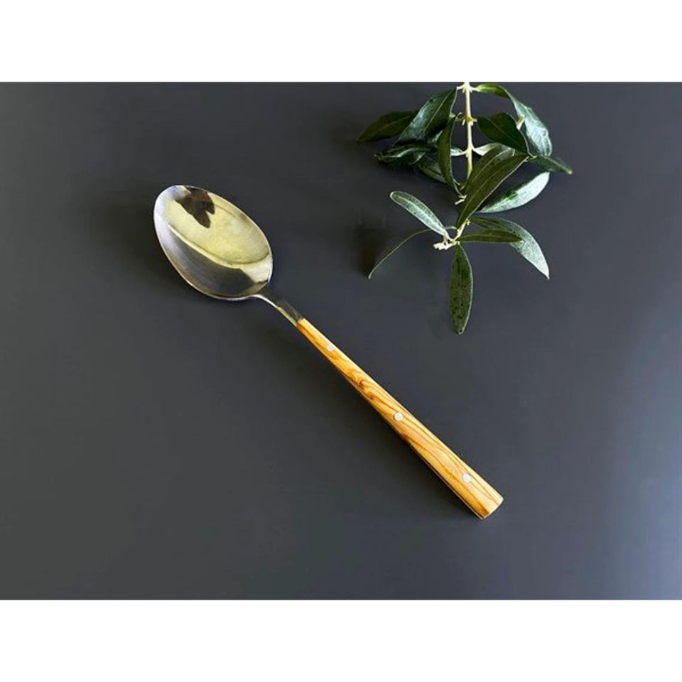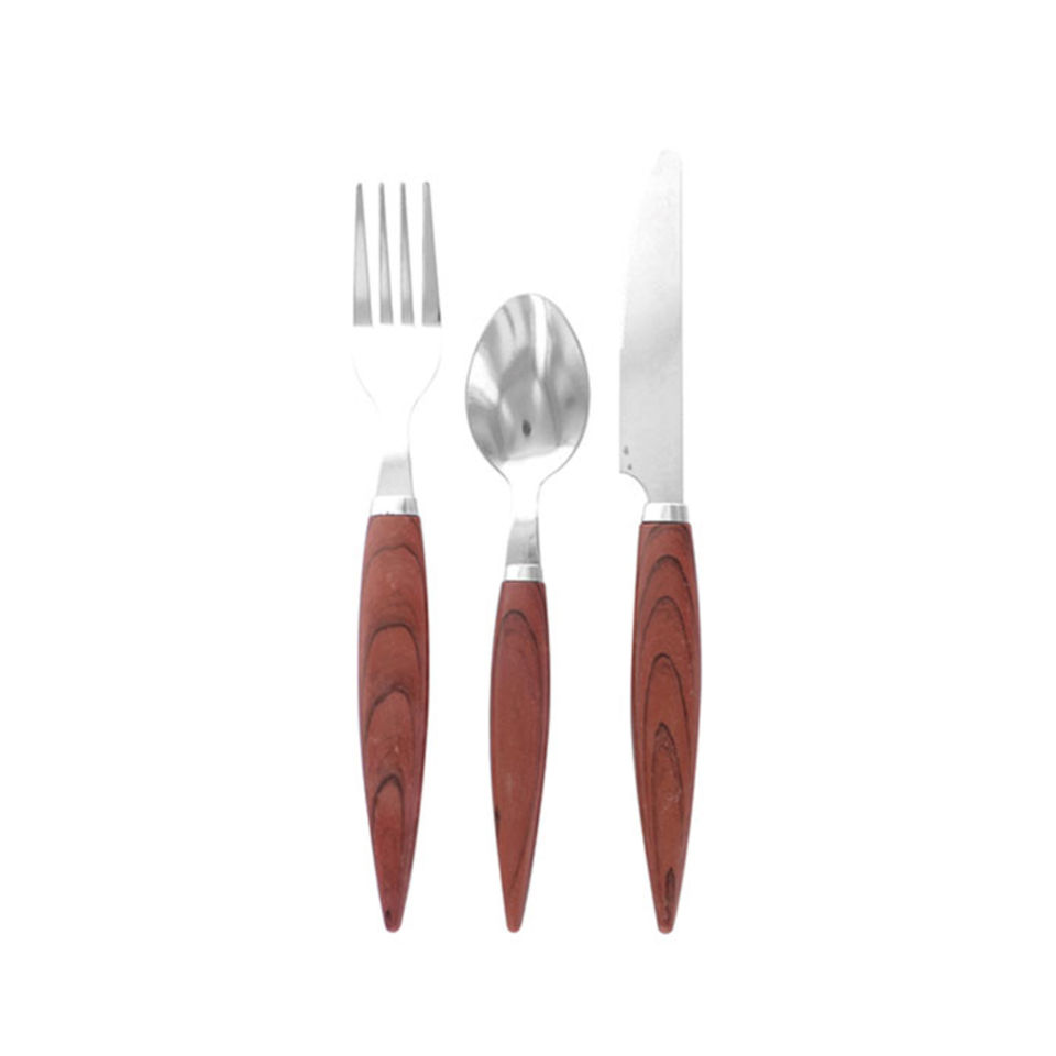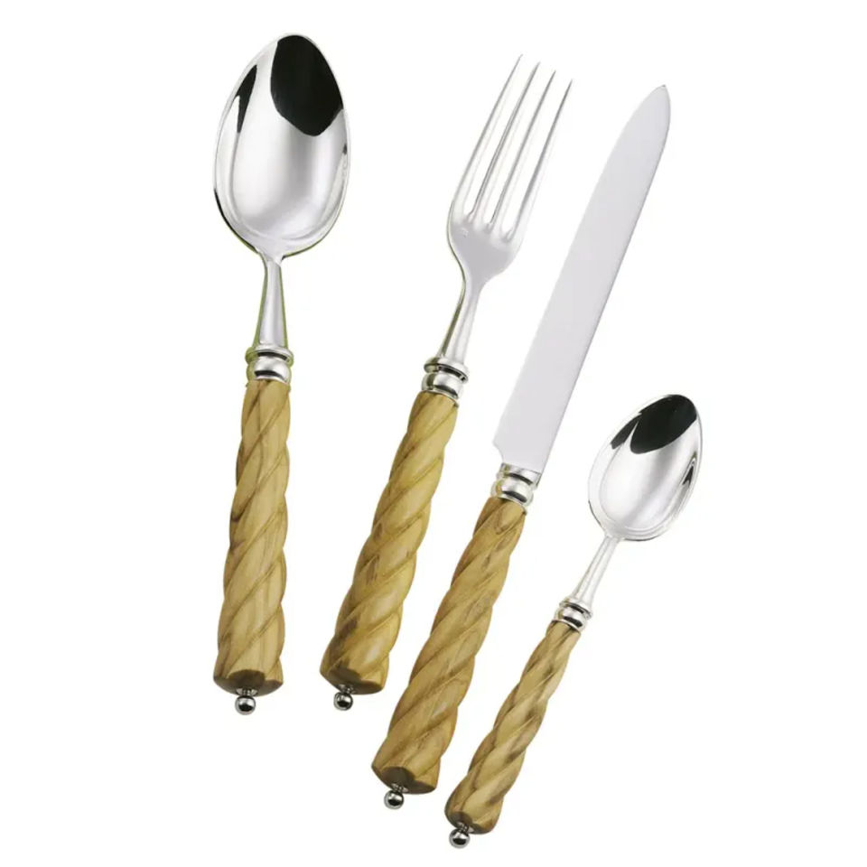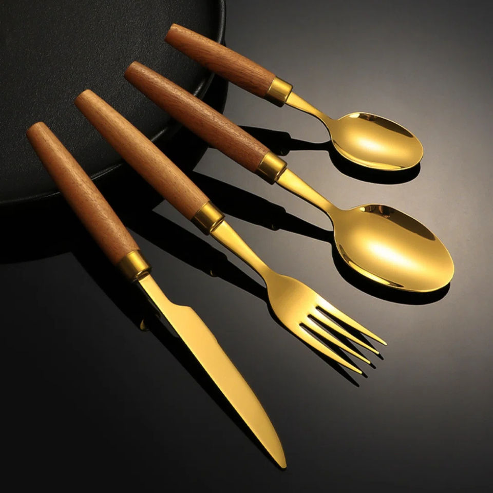 ชุดช้อนส้อมมีด้ามจับทำจากไม้แบบบิดหัวสแตนเลสเหมาะสำหรับโต๊ะอาหารในร้านอาหารโต๊ะงานแต่งงานช้อน