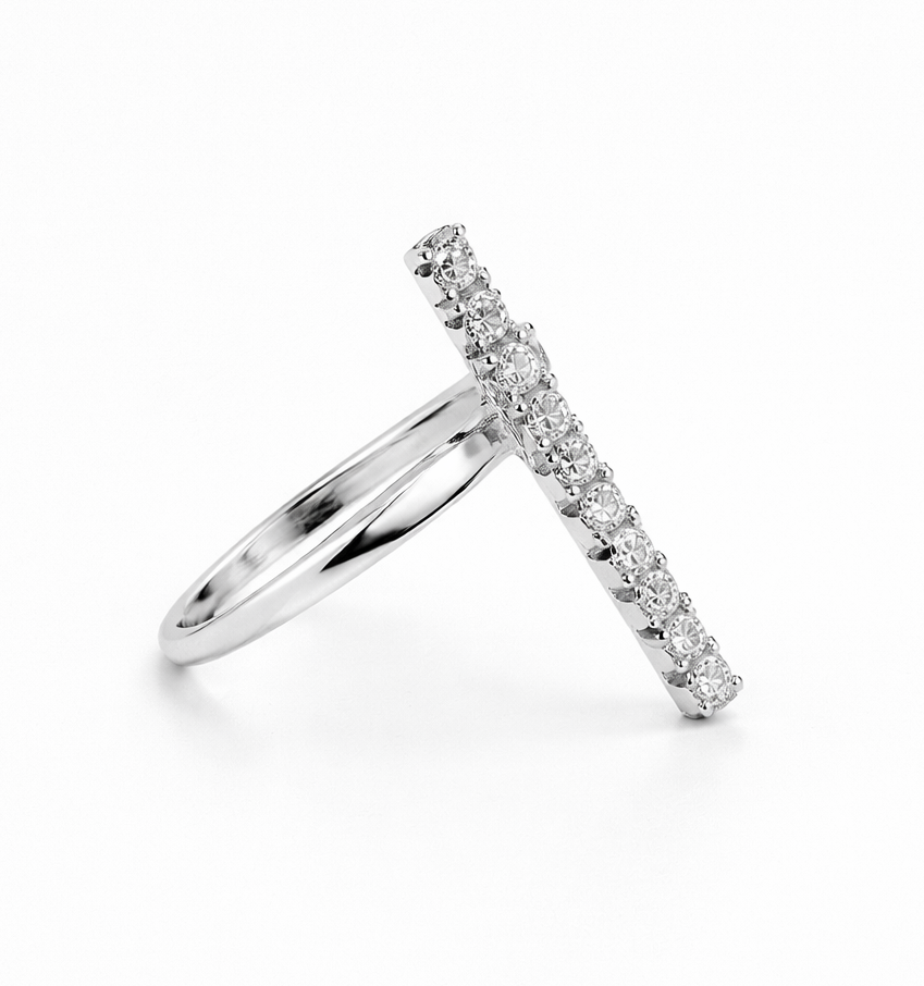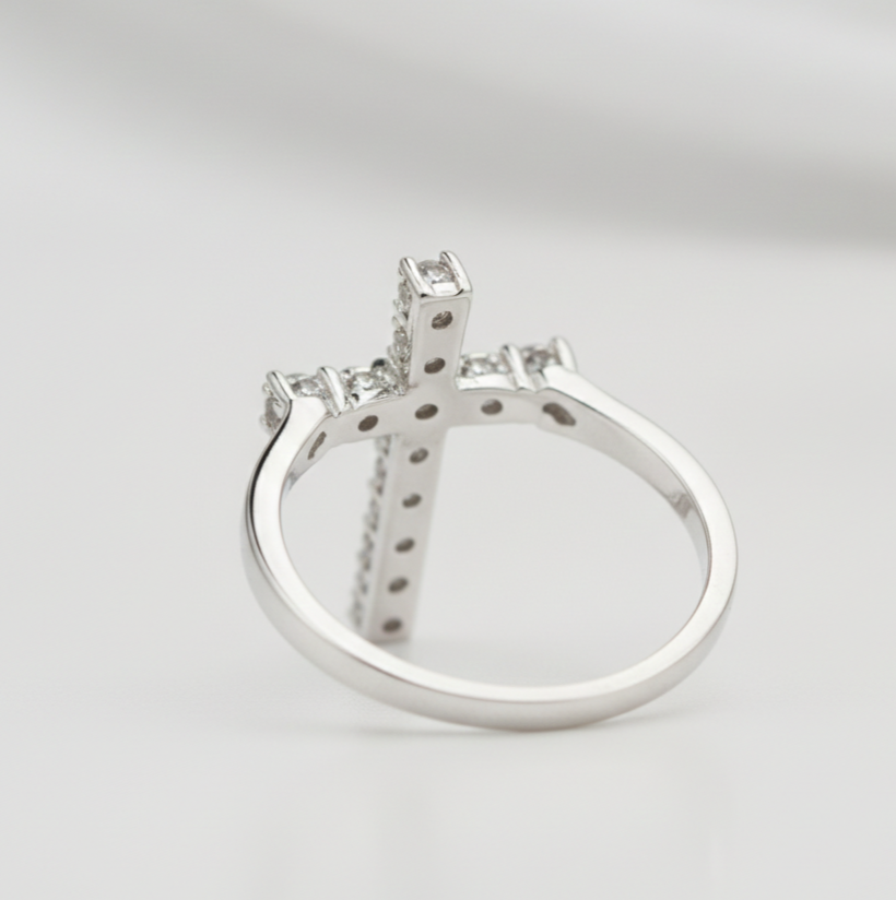 แหวนเพชรรูปกากบาท ทองคำขาว 14K 18K แหวนสไตล์มินิมอลสำหรับคริสเตียน แหวนเพชรเพาะเลี้ยงในห้องปฏิบัติการ แหวนสัญญาเพชรสวยงาม แหวนรูปกากบาทเพชรเพาะเลี้ยงในห้องปฏิบัติการ IGI
