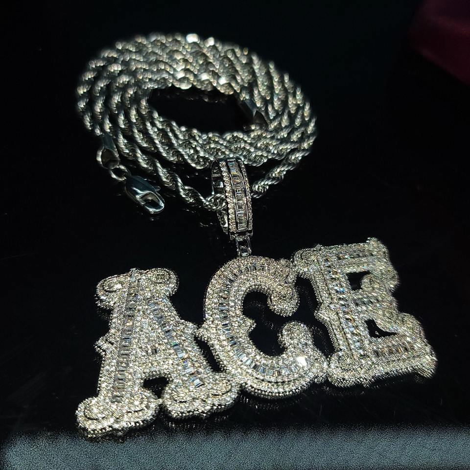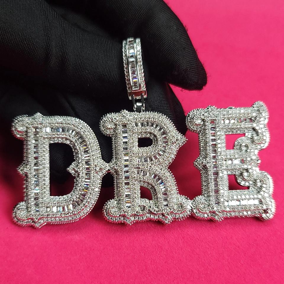 จี้รูปตัวอักษร Baguette สุดหรูพร้อมเชือกสายโซ่สร้อยคอตามสั่งชื่อสร้อยคอเครื่องประดับฮิปฮอปของขวัญวันเกิดสำหรับงานแฮนด์เมดของเธอ