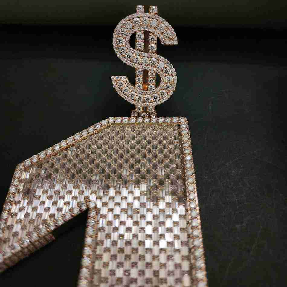 จี้ฮิปฮอปสแตนเลสสตีลรูปเครื่องหมายดอลลาร์ ประดับเพชรโมอิสซาไนต์ 260 กะรัต ดีไซน์หรูหรา สำหรับทุกเพศ