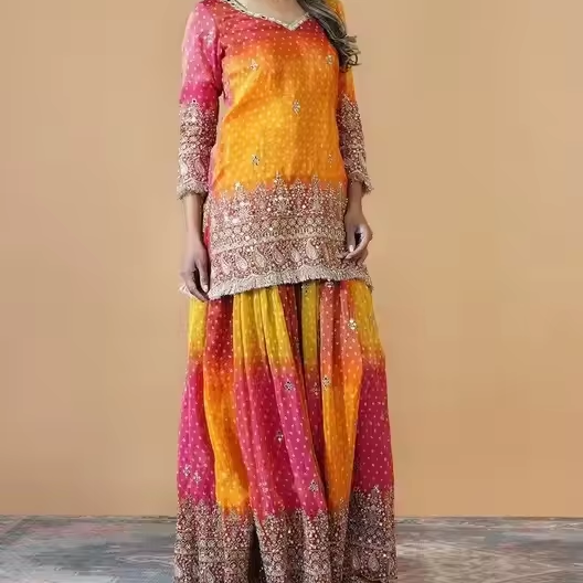 Elegant Indian Chinnon Silk Salwar Kameez with Intricate Embroidery Dori Sequins Coding Work for Parties and Weddings Festivals