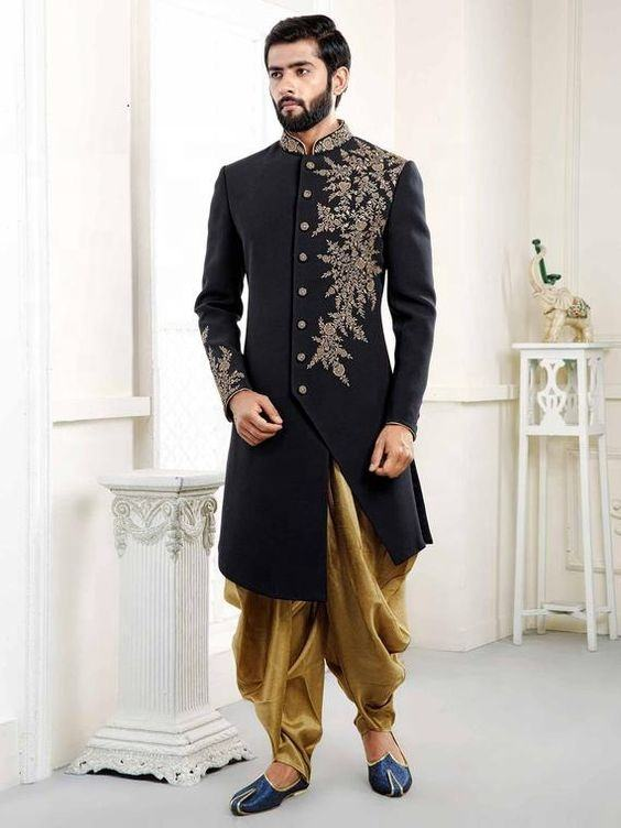 สง่างาม --- อินโด-ตะวันตก-เชอร์วานี Dhoti-ด้วยการเย็บปักถักร้อยสำหรับพรรคอินเดีย/ปากีสถานและชุดแต่งงาน = 2021 ..