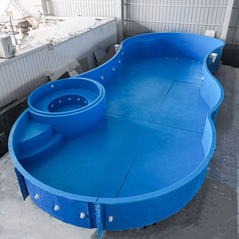 อุปกรณ์ไฟเบอร์กลาสใช้ในครอบครัวโครงสระว่ายน้ำสำเร็จรูปทรงสี่เหลี่ยมผืนผ้าหรูหราใหม่