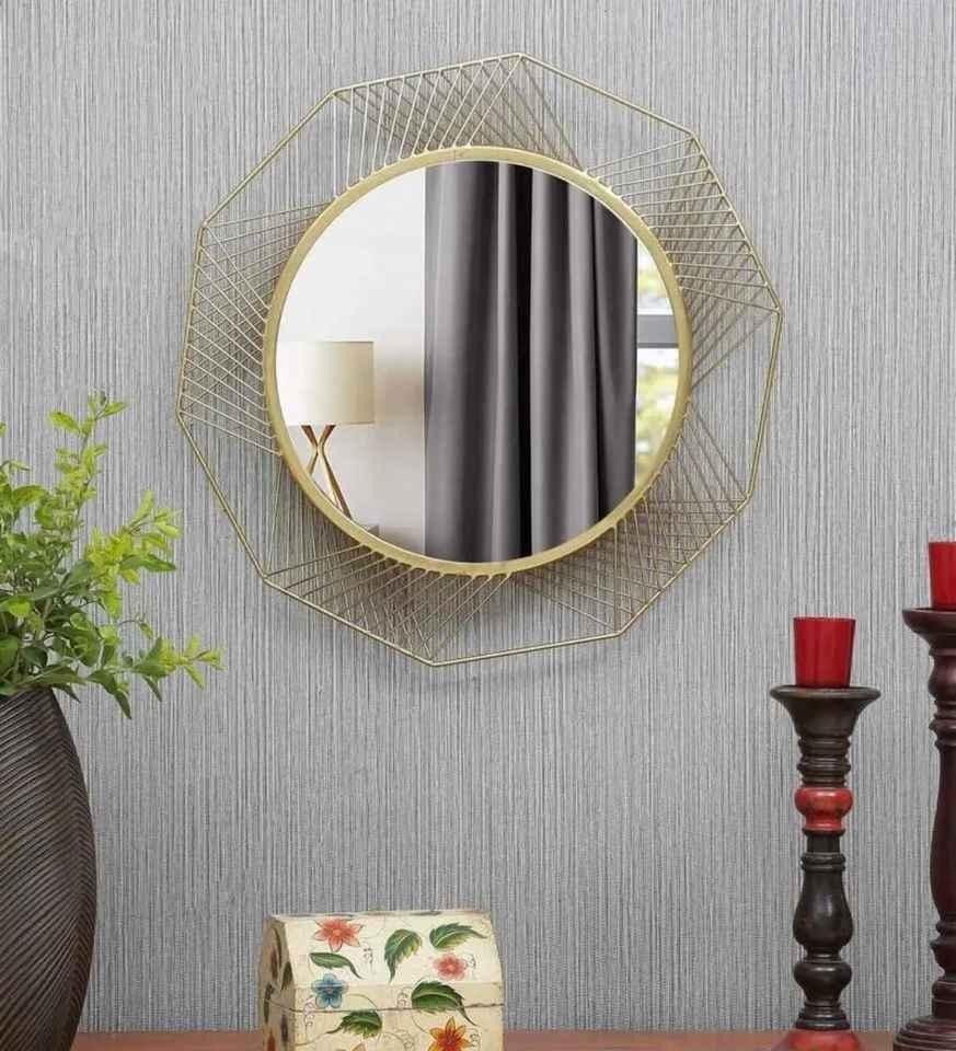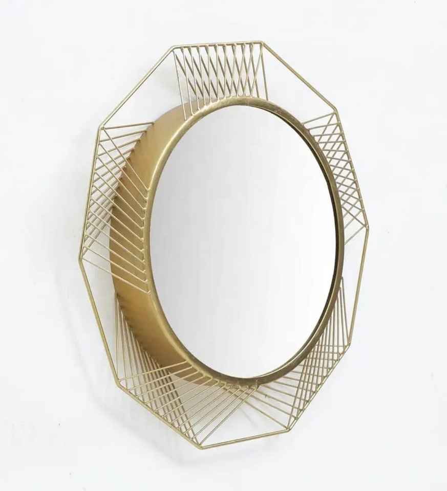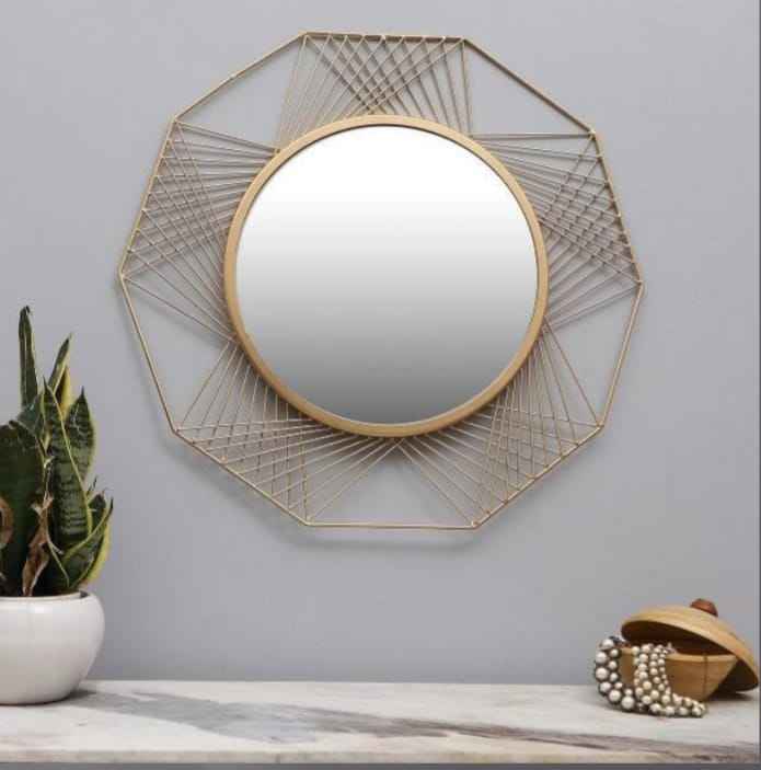 กระจกติดผนังทรงกลมกรอบเหล็กดีไซน์หรูหราทันสมัยสำหรับห้องนอน ห้องนั่งเล่น ทางเดิน ตกแต่งภายในบ้าน ปรับแต่งได้