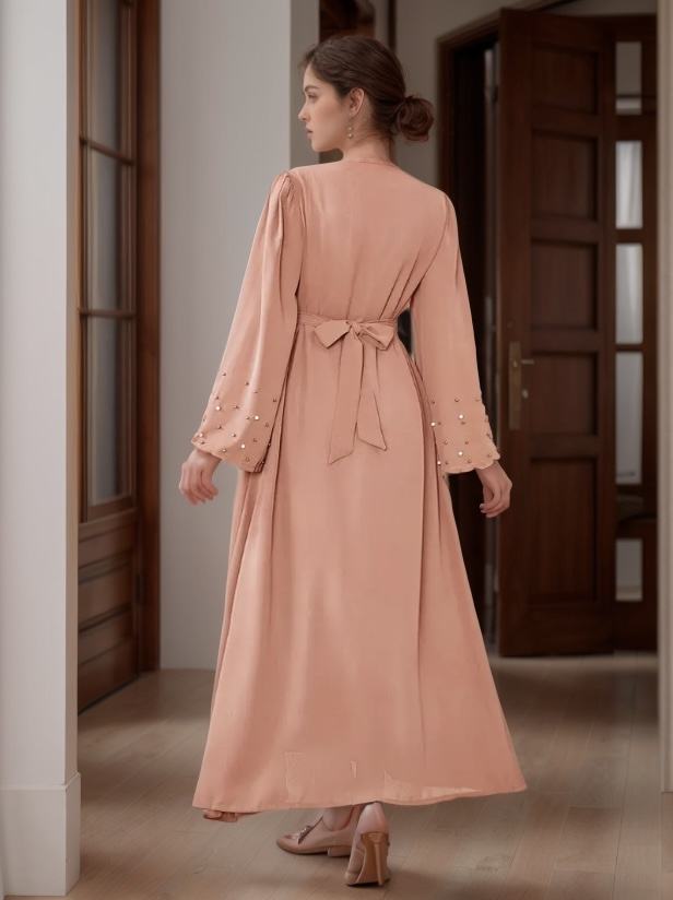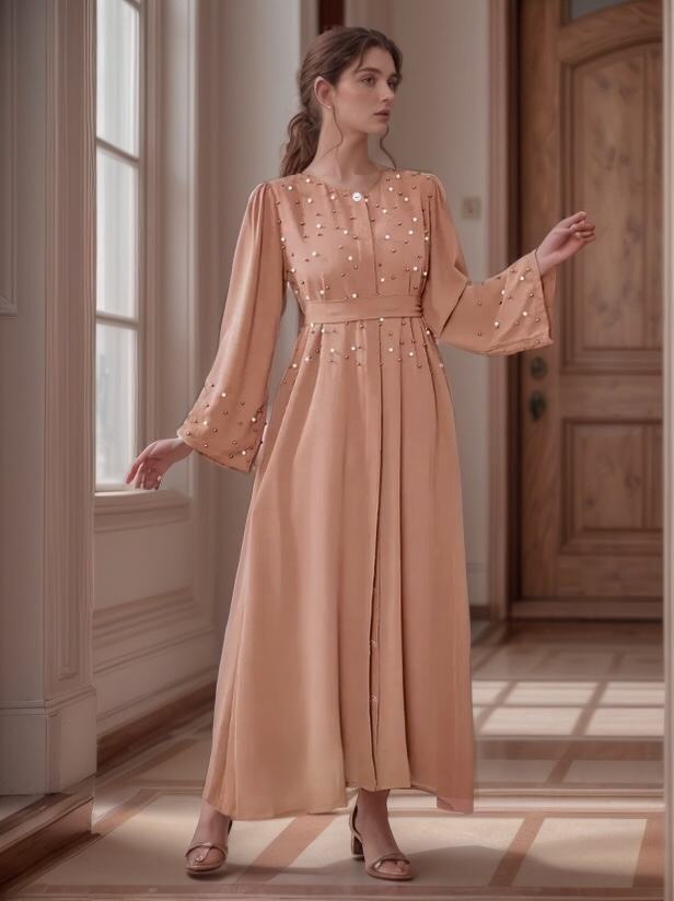 ชุดอาบายะห์อิสลามสุดหรูสำหรับผู้หญิง ผ้าทอมือ งานฝีมือ ผลิตจากโพลีเอสเตอร์ ระบายอากาศได้ดี รับผลิตตามแบบ (ODM) สำหรับงานแต่งงานและเดือนรอมฎอน