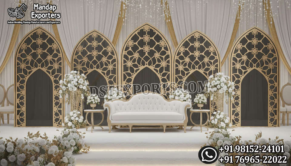 แผงตกแต่งงานแต่งงานแบบอิสลามโมร็อกโกสุดหรู ตัดด้วยเลเซอร์ โครงโค้งคลาสสิกสไตล์อังกฤษสำหรับงานแต่งงานมุสลิม โครงโค้งโมร็อกโกตัดด้วยเลเซอร์ สหรัฐอเมริกา
