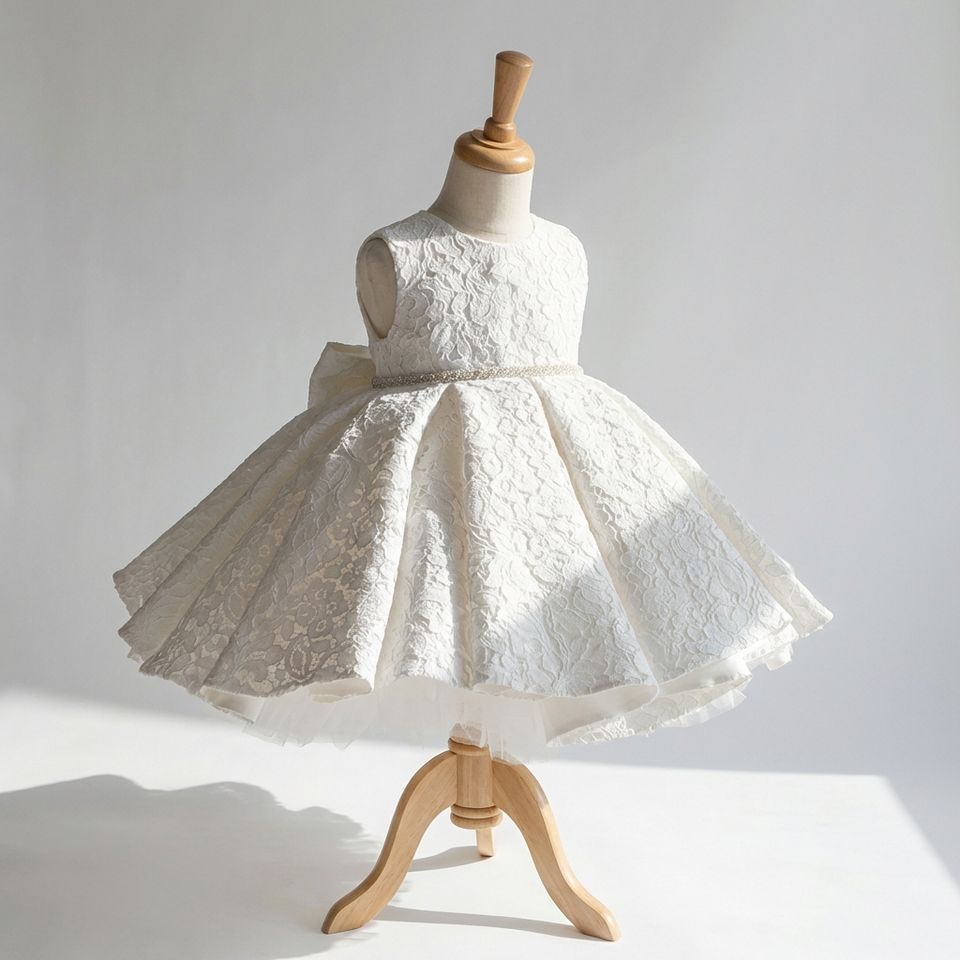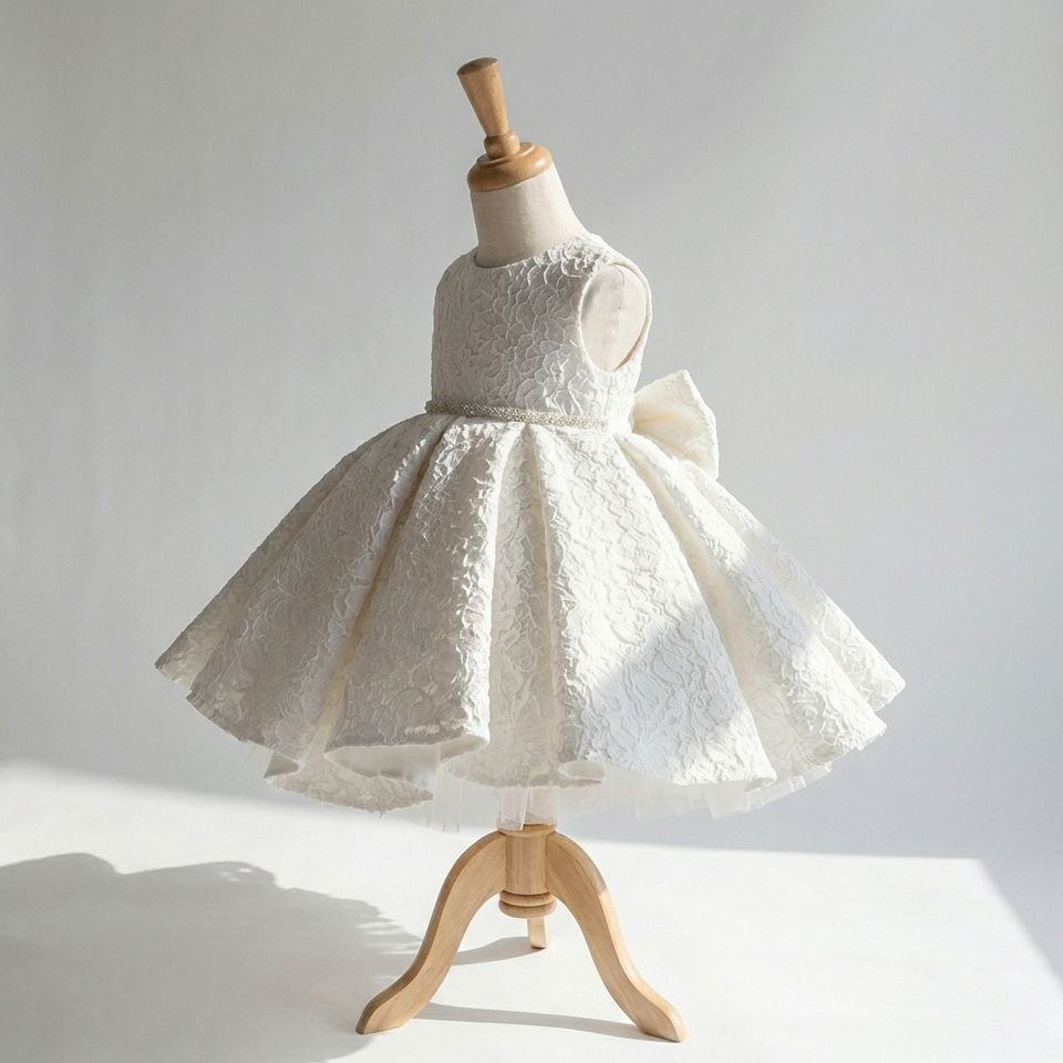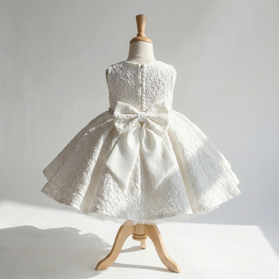 ชุดเดรสลูกไม้สีงาช้างสุดหรูสำหรับเด็กผู้หญิง ชุดเดรสสั้นสำหรับเด็กวัยหัดเดิน สวมใส่ในงานปาร์ตี้วันพ่อ