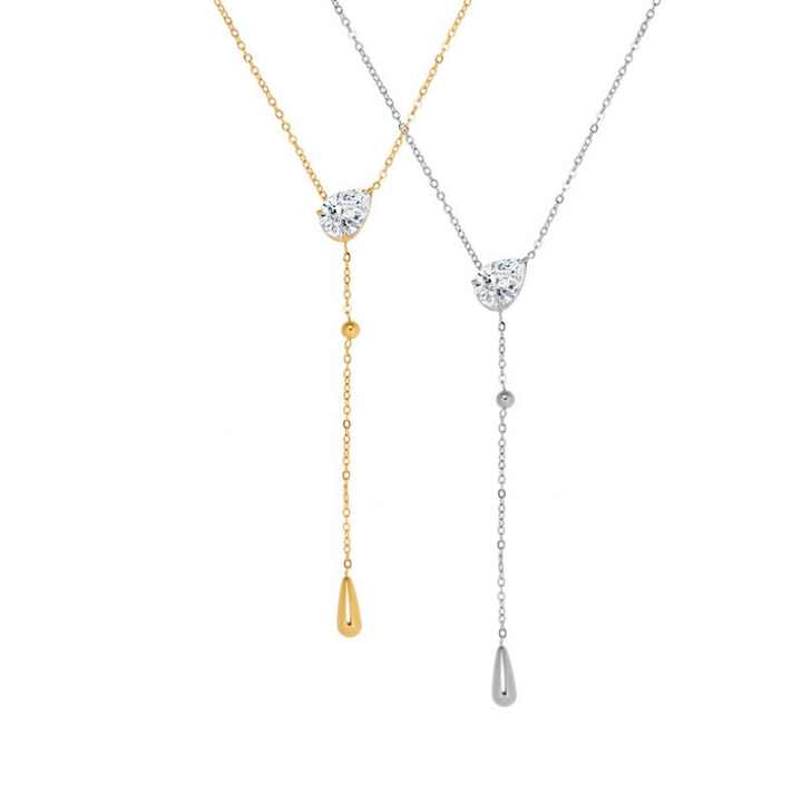 สร้อยคอแฟชั่นทรงหยดน้ำประดับเพชรซิคอน สแตนเลสคุณภาพดี ไม่ลอก ไม่ดำ สำหรับผู้หญิง