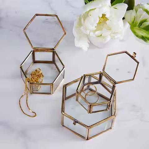 กล่องแก้วเครื่องประดับหรูหราขนาดและสีที่กำหนดเองสำหรับการจัดระเบียบเครื่องประดับ