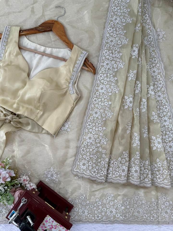ผ้าส่าหรีโพลีเอสเตอร์ดีไซน์เนอร์จิมมี่ ชู งานปักด้ายลายสวยงาม พร้อมเสื้อคลุมแบบไม่เย็บติด สำหรับงานเลี้ยงฉลองเทศกาลสุดหรู
