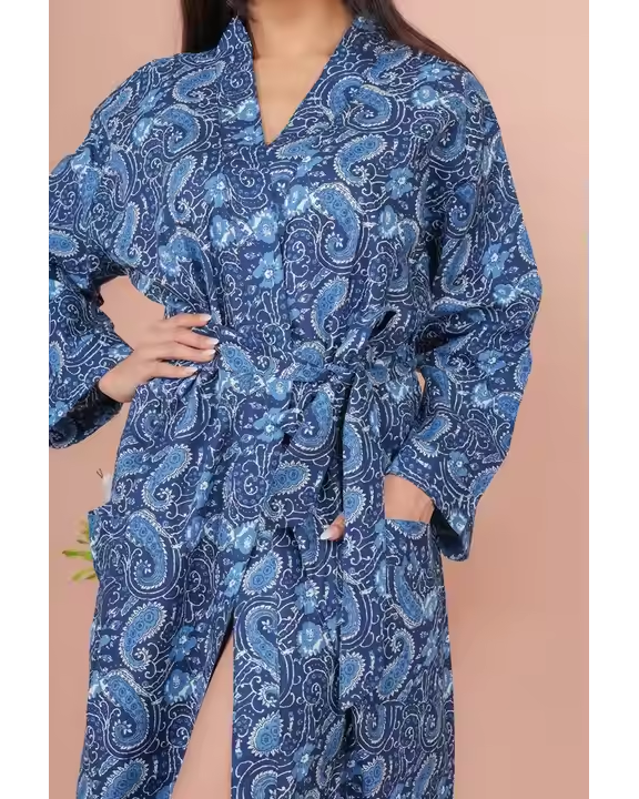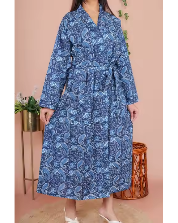 เสื้อคลุมอาบน้ำผ้าฝ้ายคุณภาพสูง ดีไซน์ผูกเชือกแบบกิโมโน ควิลท์ลาย ใส่ได้สองด้าน