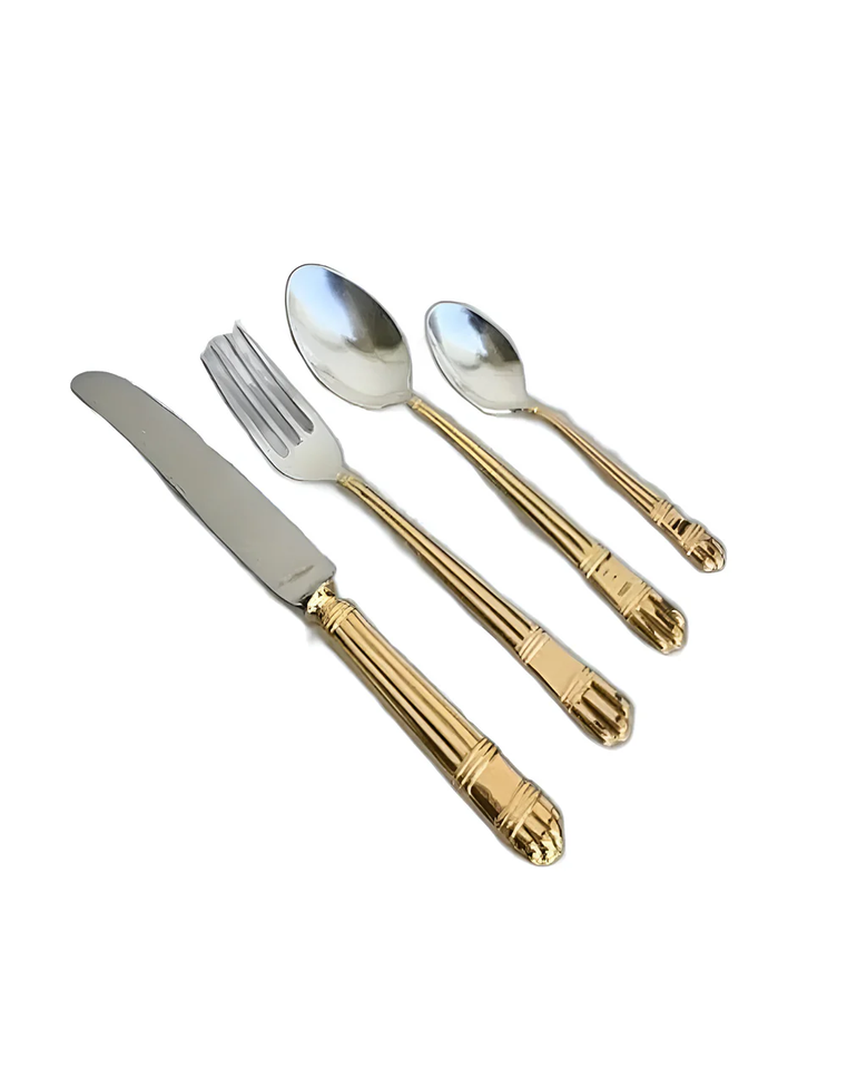 ชุดช้อนส้อมสแตนเลสสตีลพร้อมด้ามทองเหลือง ดีไซน์หรูหรา เป็นมิตรต่อสิ่งแวดล้อม เหมาะสำหรับเสิร์ฟอาหาร พร้อมอุปกรณ์เสริมสำหรับบริการอาหาร
