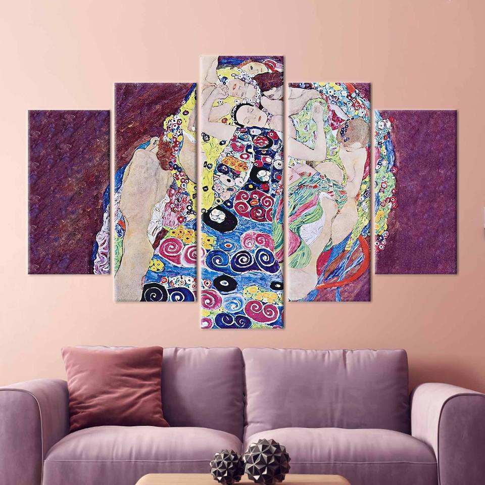 งานศิลปะคลิมท์สุดหรู: ภาพพิมพ์บนผ้าใบสำหรับตกแต่งบ้าน ชุด 5 ชิ้น: ภาพพิมพ์แบบห่อขอบ