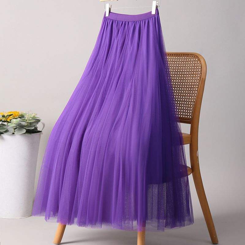 กระโปรงผ้าทูลเอวสูงแฟชั่นเกาหลีแบบหรูหราสำหรับผู้หญิงในฤดูใบไม้ร่วง