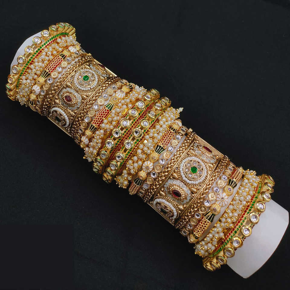 ชุดกำไลข้อมือและไข่มุก Kundan หรูหราเครื่องประดับตกแต่งสวยงามเหมาะสำหรับงานแต่งงานและงานปาร์ตี้