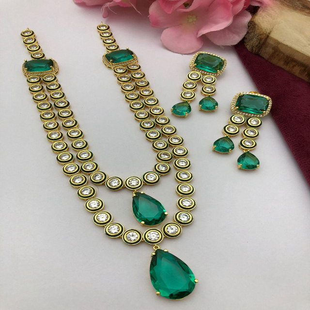 ชุดสร้อยคอ kundan หรูหราสำหรับผู้หญิงหินประดับชาติพันธุ์เหมาะสำหรับสวมใส่เจ้าสาวฟังก์ชั่นงานรื่นเริงและงานเลี้ยง
