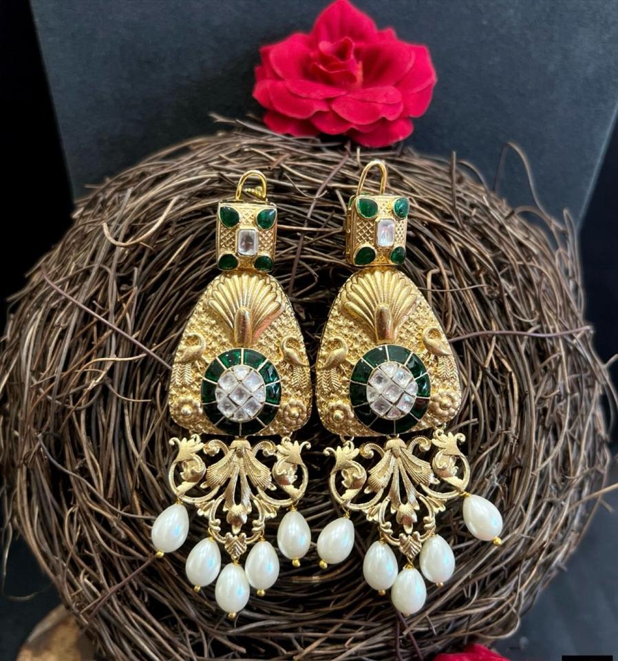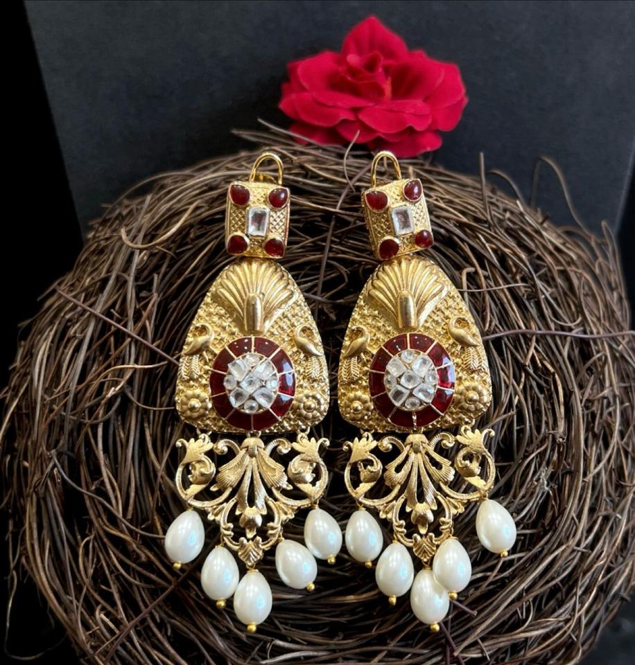 ต่างหูห้อยลายจุดแบบดั้งเดิม Jhumkas ไข่มุกกุณแจ็คคาหรูหราออกแบบตามเทศกาล