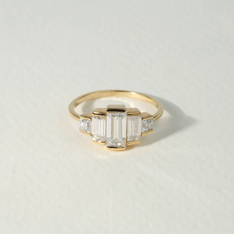 แหวนหมั้นเพชร CVD ทรงบาแกตต์ 2.5 กะรัต ผลิตในห้องปฏิบัติการ ดีไซน์หรูหรา แหวนค็อกเทล เครื่องประดับที่เป็นมิตรต่อสิ่งแวดล้อมและยั่งยืน เหมาะเป็นของขวัญ