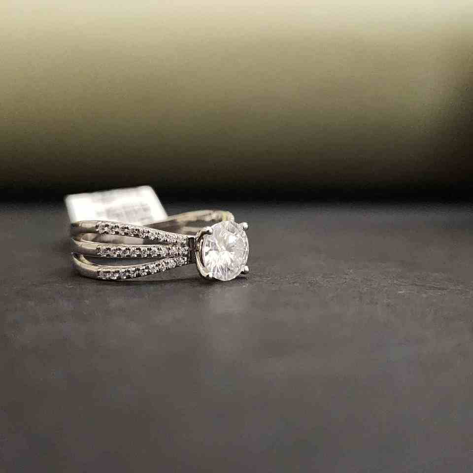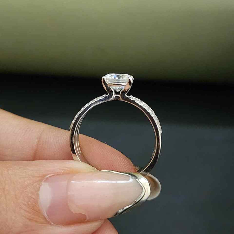 แหวนหมั้นมอสซาไนต์สังเคราะห์สุดหรู ดีไซน์ทันสมัย ตัวเรือนสเตนเลสสตีลชุบเงินสเตอร์ลิง พร้อมใบรับรอง IGI