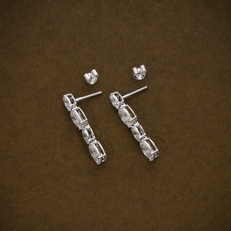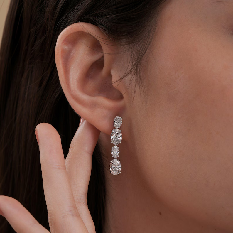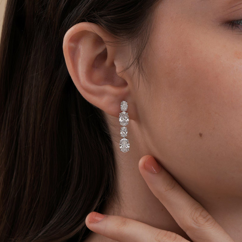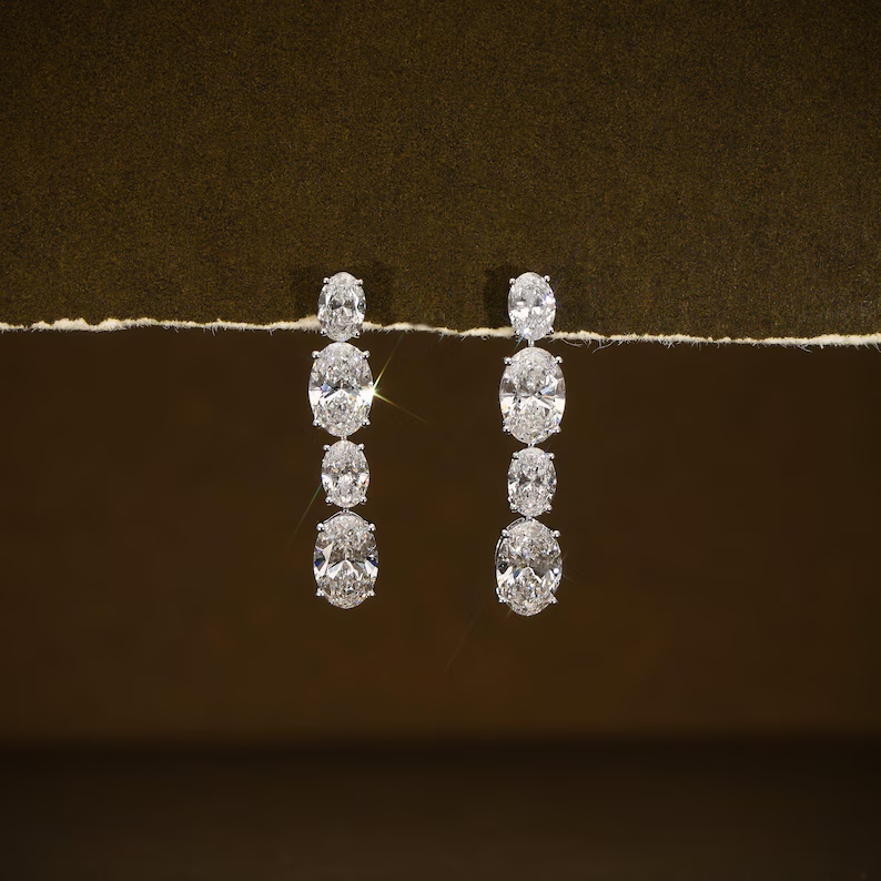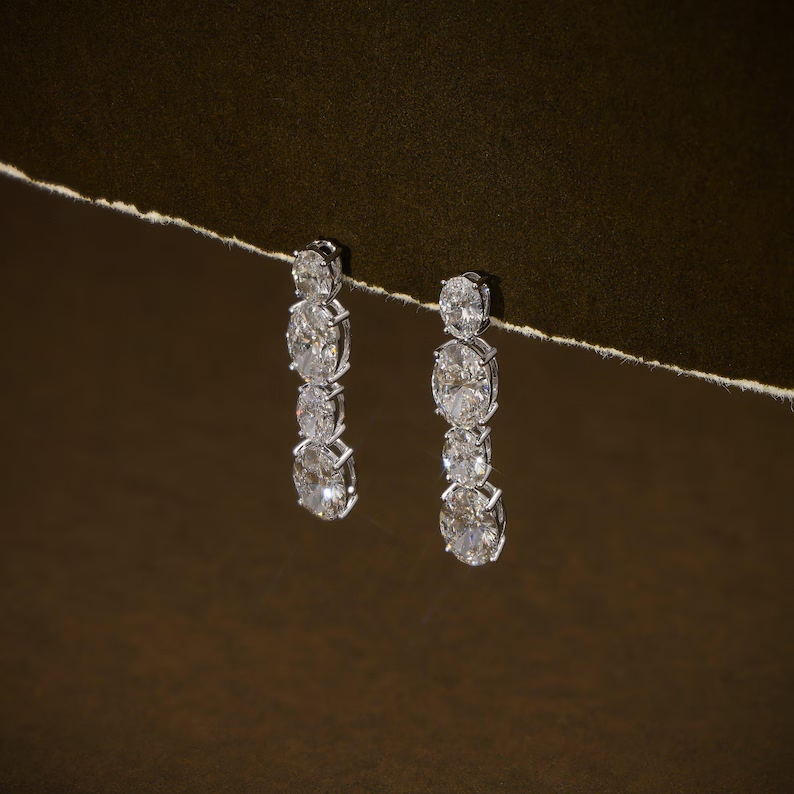 ต่างหูเพชรทรงรีแบบห้อย ดีไซน์หรูหรา เพชรเลี้ยงในห้องปฏิบัติการ น้ำหนักรวม 5.95 กะรัต พร้อมใบรับรองเพชร เหมาะสำหรับเจ้าสาว งานแต่งงาน เครื่องประดับต่างหูสุดหรู