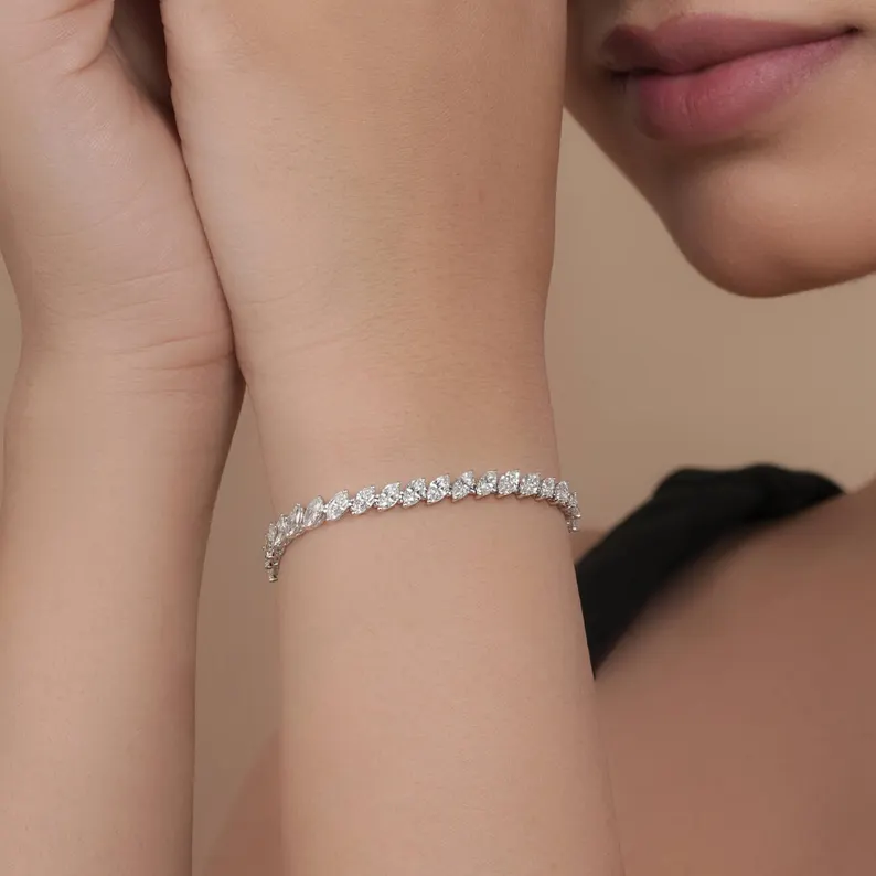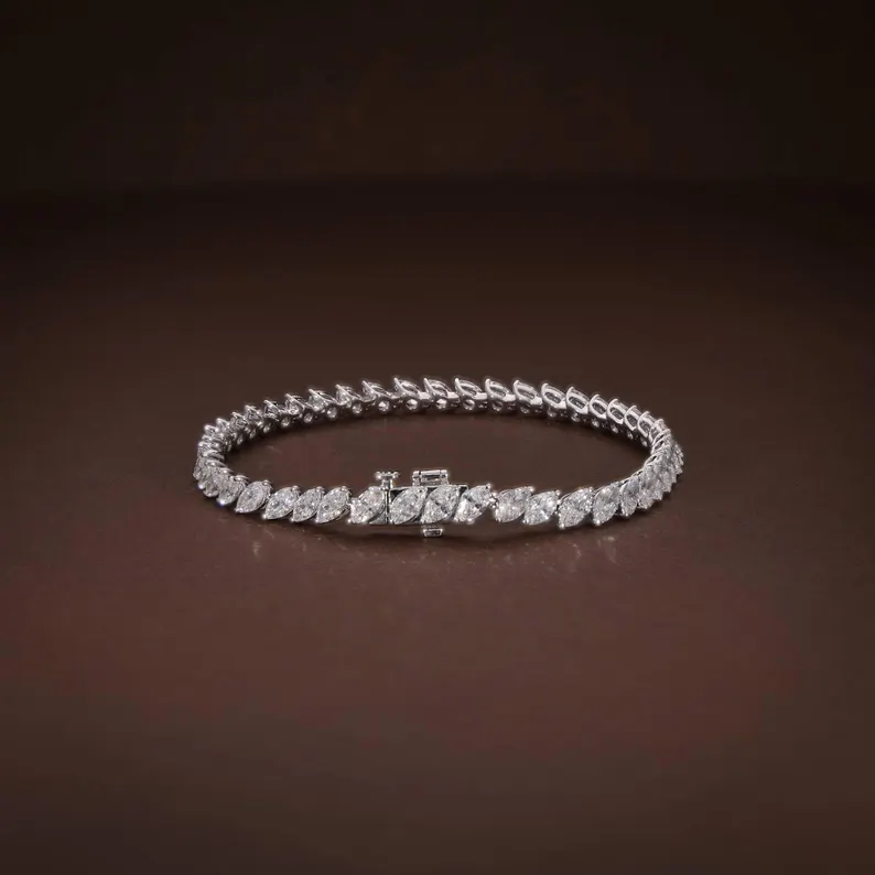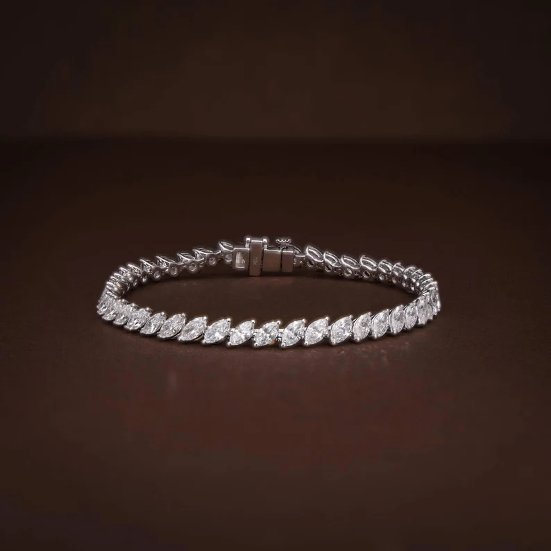 สร้อยข้อมือเพชรเทียมทรงมาควิส น้ำหนักรวม 7.09 กะรัต คุณภาพ F-G VVS-VS รับรองโดยสถาบัน หรูหราสำหรับผู้หญิง