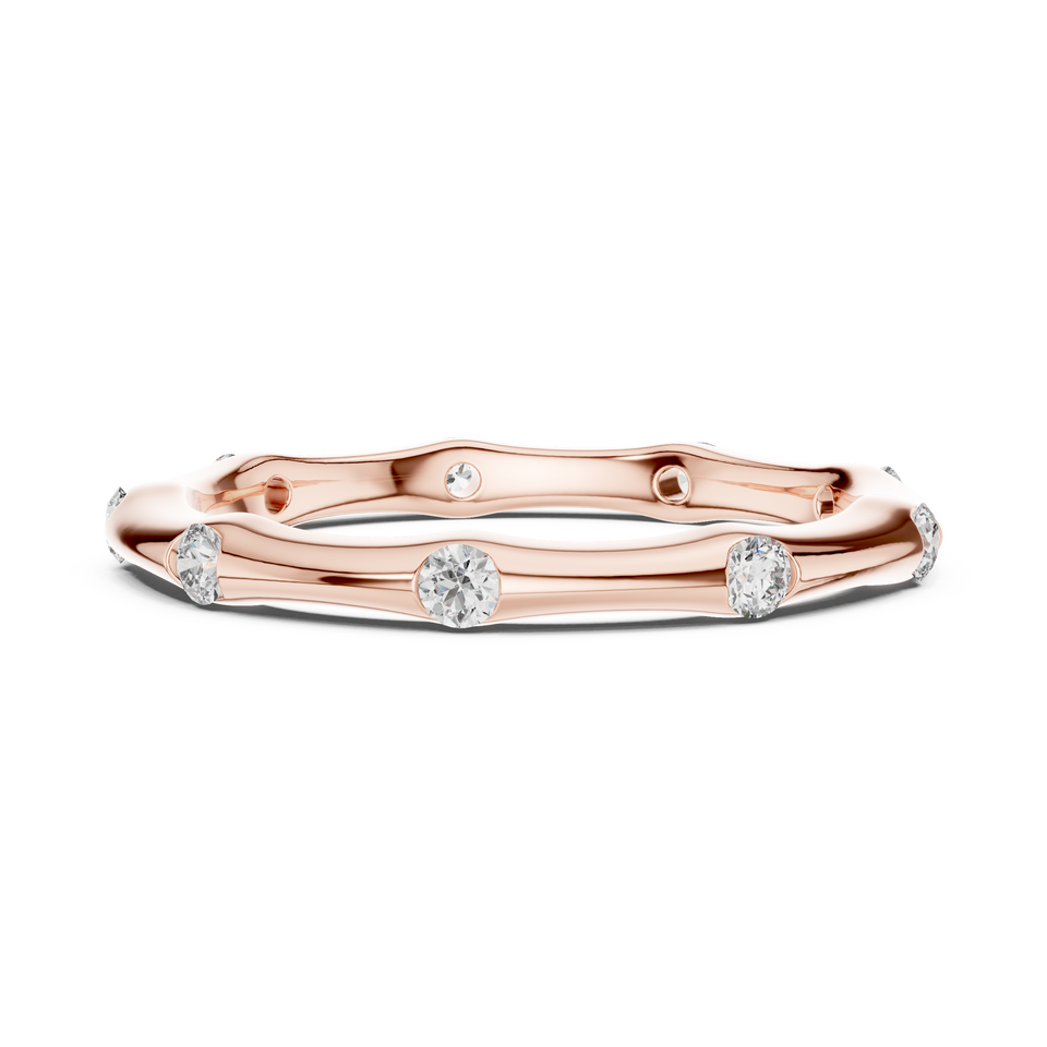 แหวนเพชรแล็บโกรว์ทรงหรูหราสามแถว ทอง 18k 14k 9k โรสโกลด์ ไวท์โกลด์ ทรงกลมเจียระไนบริลเลียนท์ ชุดแหวนหมั้นและแต่งงานที่ยั่งยืน