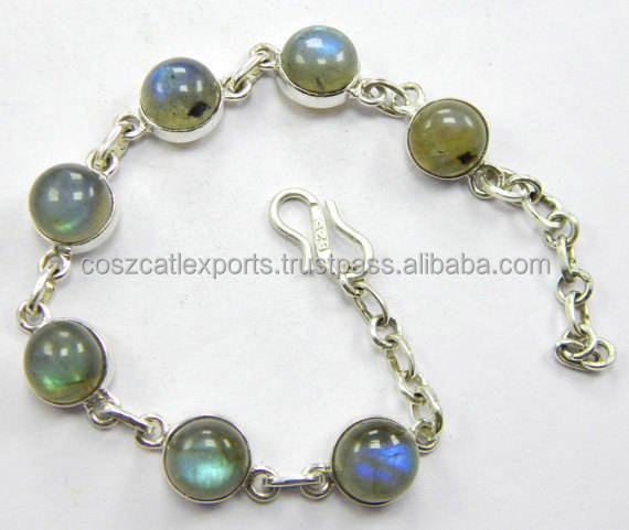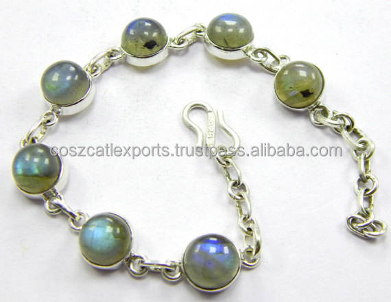 กำไลข้อมือพลอยลาบราโดไรต์ทรงหรูหรา พร้อมกรอบพลอย อุปกรณ์และส่วนประกอบเครื่องประดับระดับพรีเมียม ผลิตโดย Coszcalt Exports รุ่น IU14520D