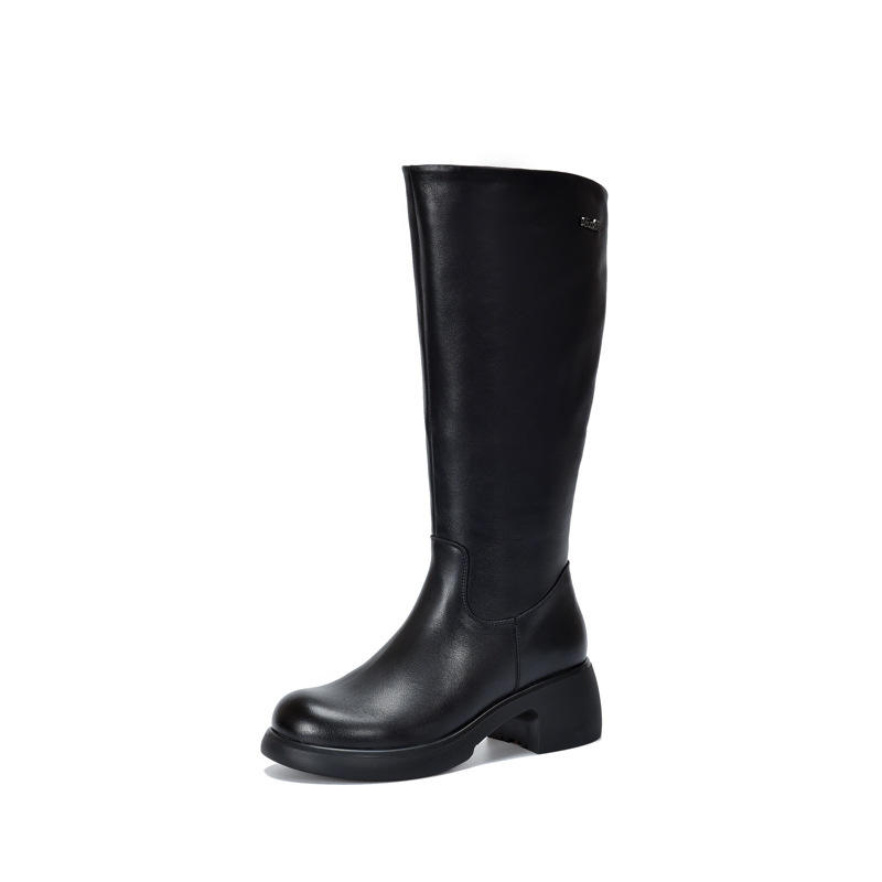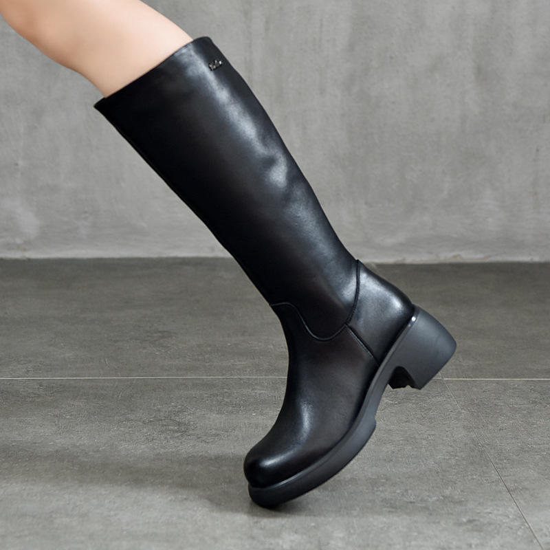รองเท้าบูทหนังทรงสูงระดับเข่า ส้นหนา ซิปด้านข้าง แฟชั่นสำหรับผู้หญิง รองเท้าบูททรงสูง
