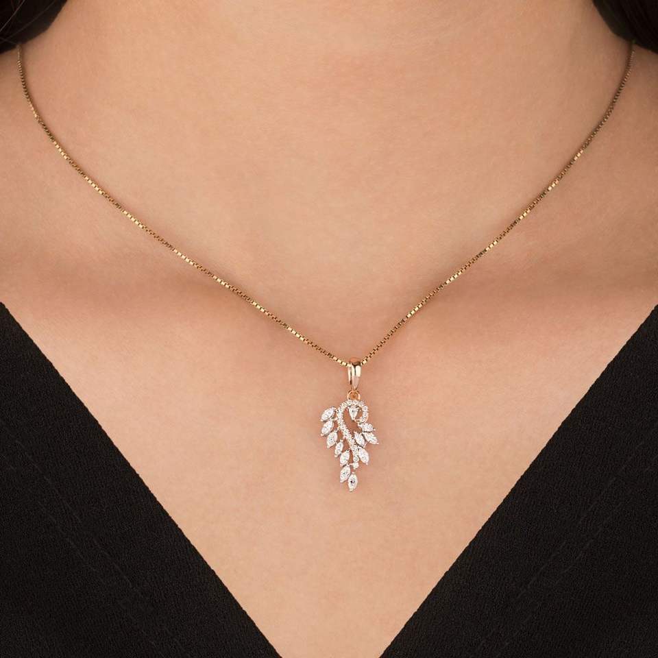 จี้เพชรทรงใบไม้สุดหรู สร้อยคอทองคำประดับเพชรเลี้ยงในห้องปฏิบัติการ ดีไซน์จากธรรมชาติสำหรับผู้หญิง