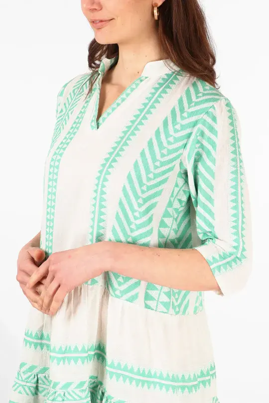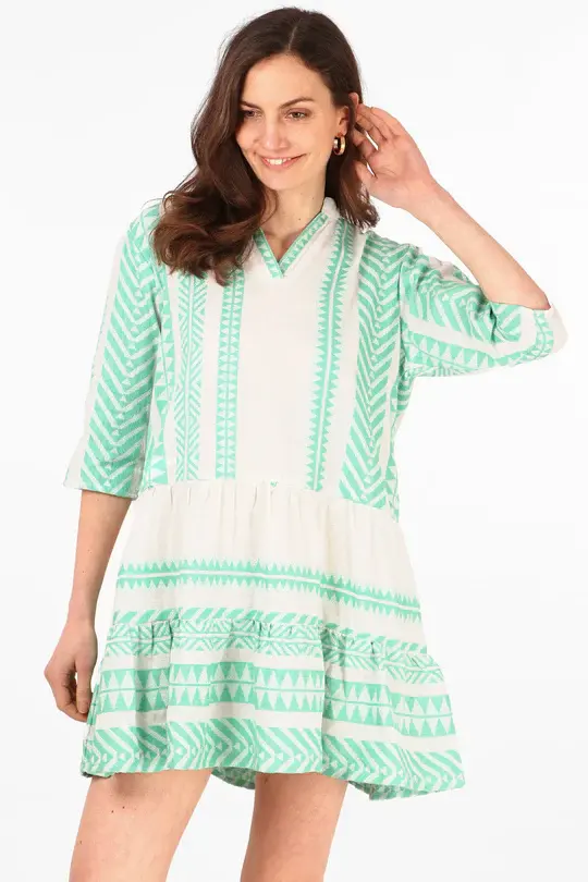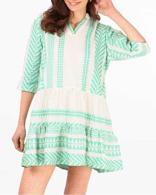 ชุดเดรสแขนสั้นคอวีมินิของผู้หญิง, ชุดเดรสผ้าทอคอวีเนื้อเรียบหรูน้ำหนักเบาและมีสไตล์สำหรับใส่ในช่วงฤดูร้อน