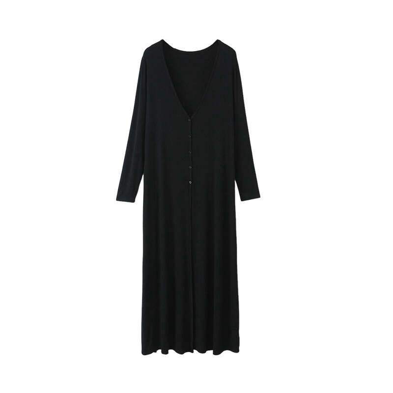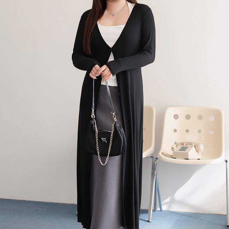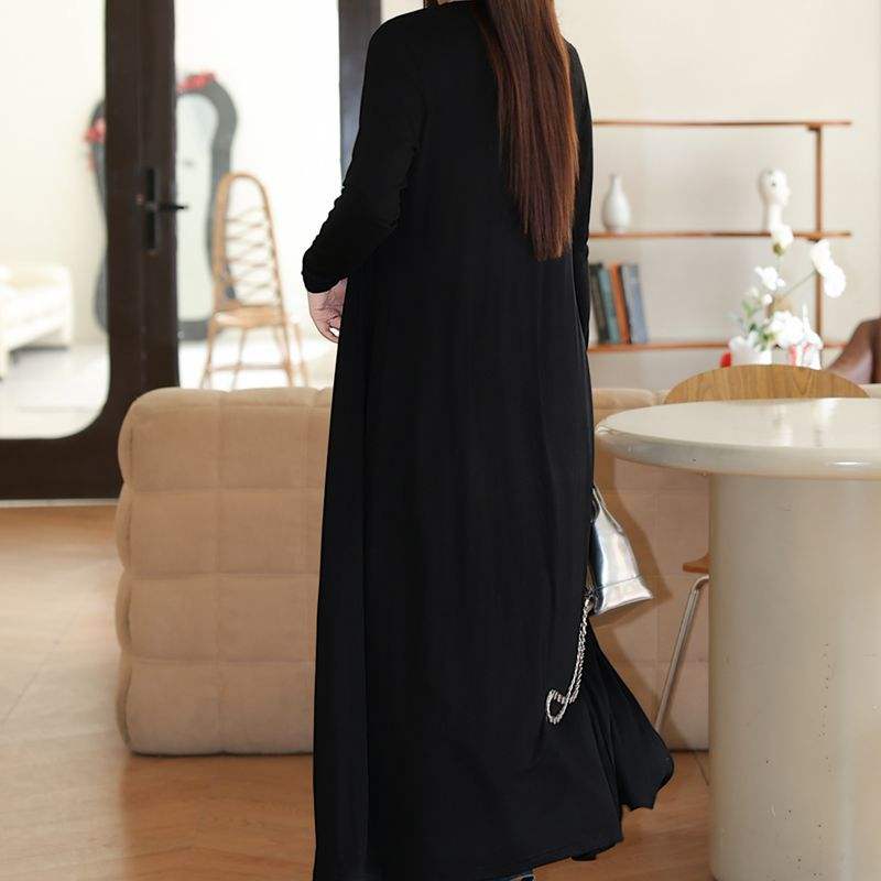 เสื้อคลุมคาร์ดิแกนสีดำทรงยาว ดีไซน์หรูหรา สำหรับผู้หญิงไซส์พลัส พร้อมดีไซน์ไหล่ตรงและเข้ารูปช่วงเอว