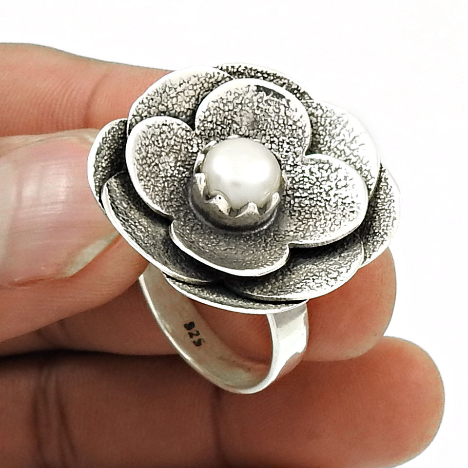 แหวนหินมุกเงินสเตอร์ลิง925ลายดอกไม้แหวนสวยสำหรับเป็นของขวัญวันครบรอบแต่งงานเครื่องประดับทำมือ