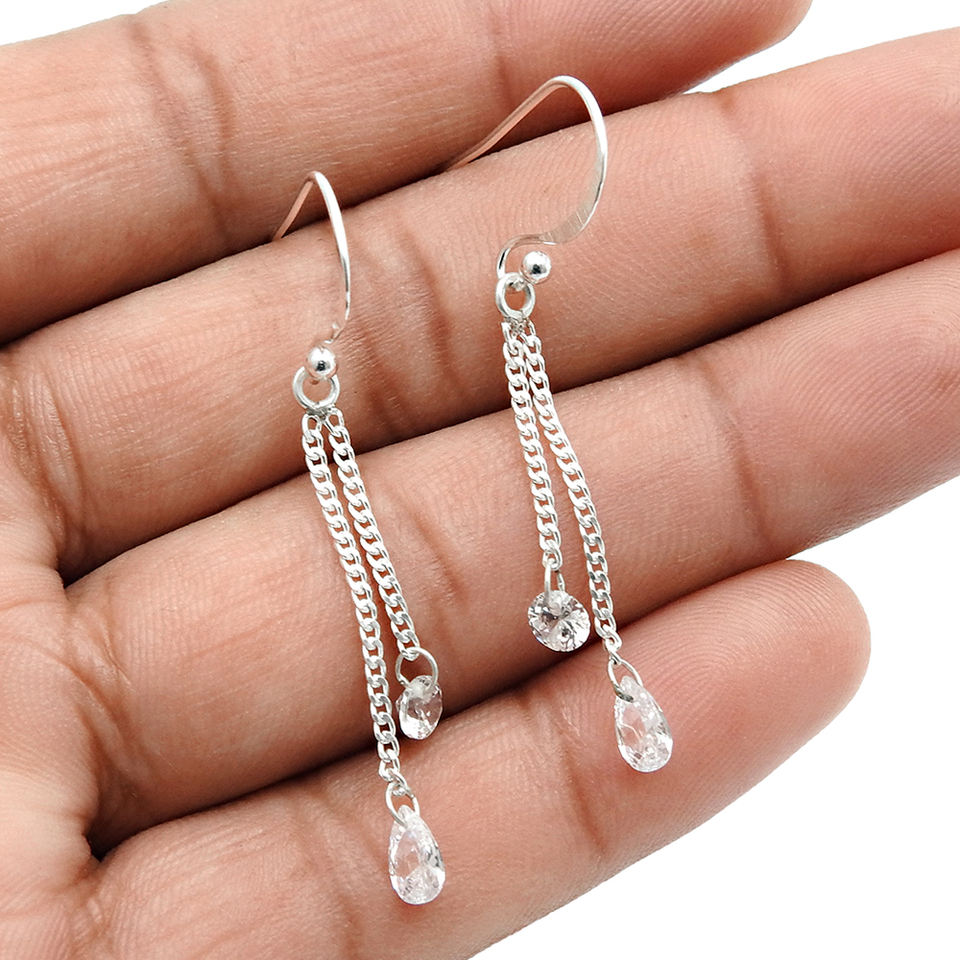 ต่างหูเซอร์โคเนียเซอร์โคเนียสีขาวเงินดูหรูหรา925สำหรับงานเลี้ยงวันเกิดเครื่องประดับงานแฮนด์เมดผู้จัดจำหน่ายขายส่ง