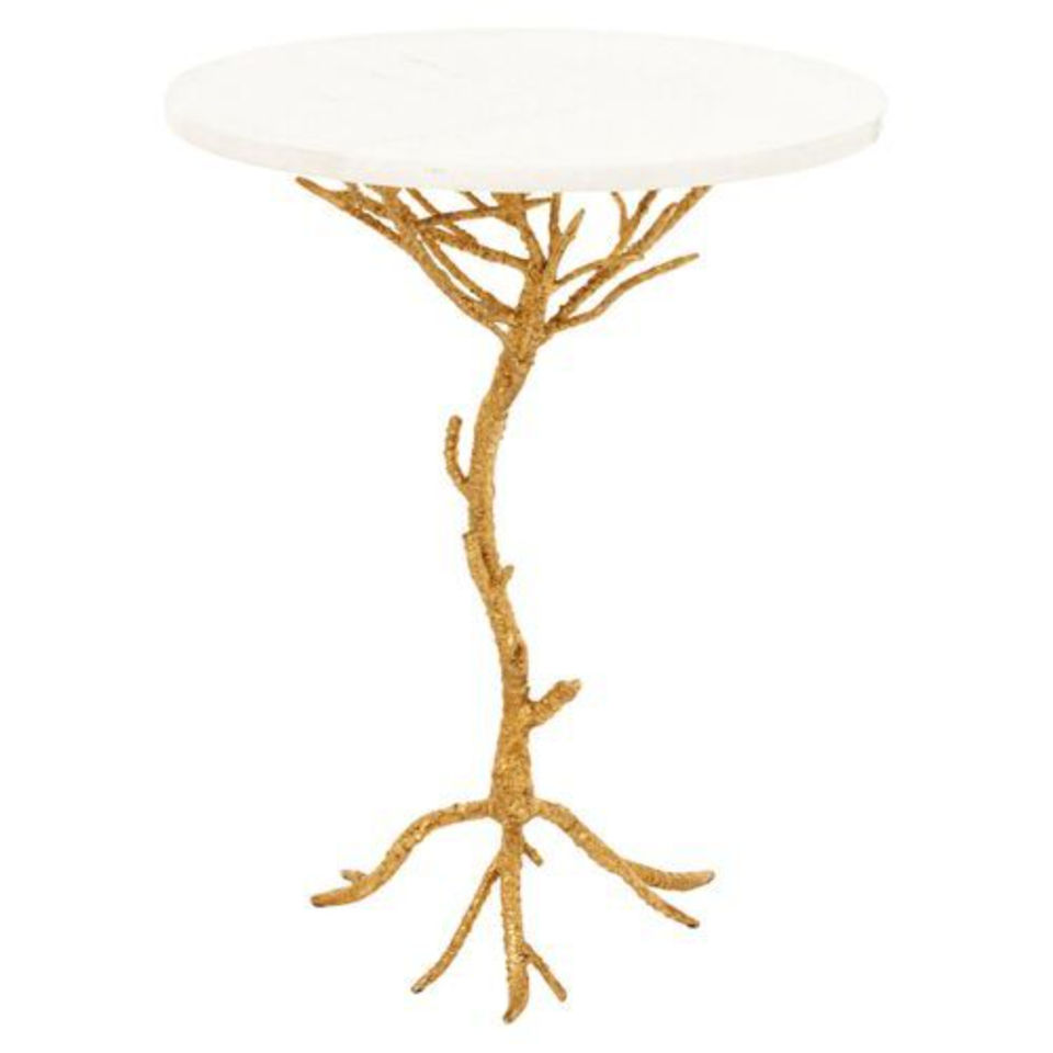 โต๊ะกาแฟทรงกลมเคลือบทองคุณภาพสูง ดีไซน์หรูหรา ฐานสีดำมีสไตล์โดดเด่น เหมาะสำหรับบ้านและโรงแรม