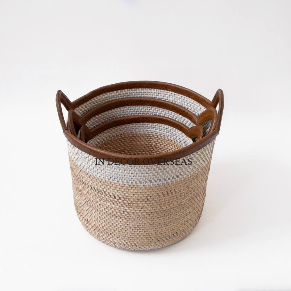 ชุดหวายทำจากหวายที่มีคุณภาพสูงดูสง่างามตะกร้าจัดระเบียบ3ใบสำหรับการใช้งานเครื่องครัวจากอินเดีย