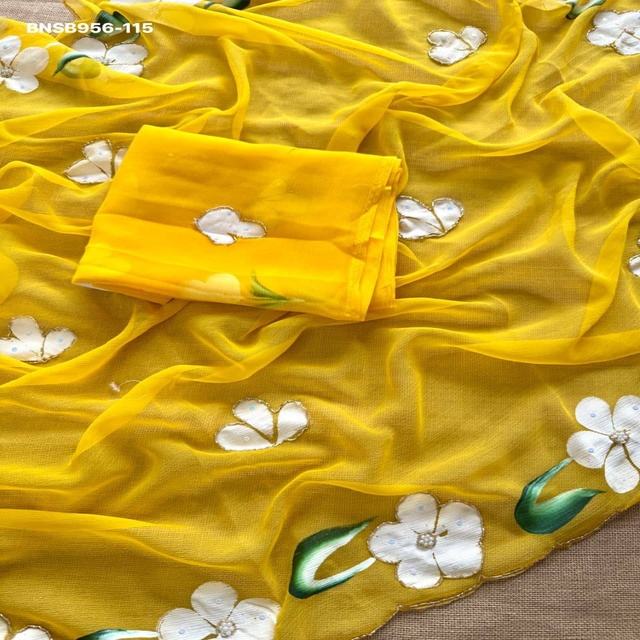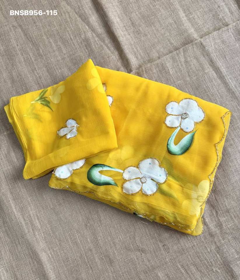 ชุดส่าหรีผ้าชีฟอง ปักลาย Khatli และงานฉลุ - พร้อมเสื้อ