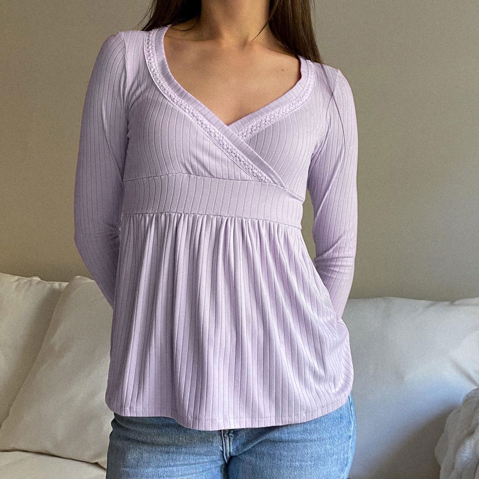 เสื้อถักลูกไม้แขนยาวคอวีทรงหลวม สไตล์เรียบหรู สีพื้น สำหรับผู้หญิง ใส่ได้ทุกวัน ลำลอง ทำงาน แฟชั่น 2025
