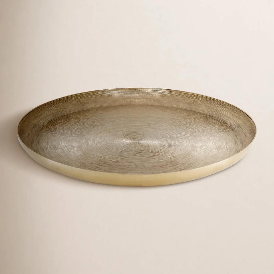 ถาดโลหะทรงกลมแบบเรียบหรูสำหรับใส่เทียนและของตกแต่งบ้าน ถาดโลหะทรงกลมขนาดใหญ่ Hensley สำหรับตกแต่ง