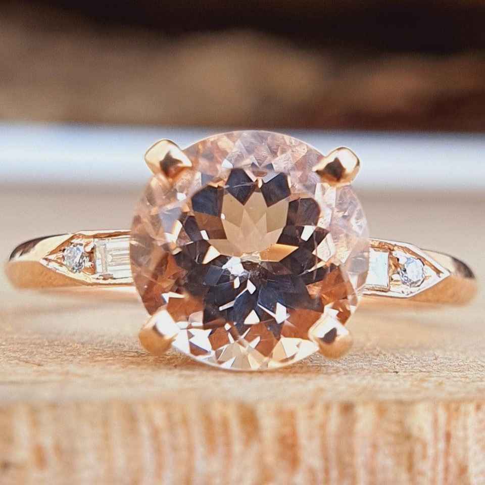 แหวนเน้นเพชรมอร์แกไนท์และมออิสซาไนต์ทรงกลมตัด