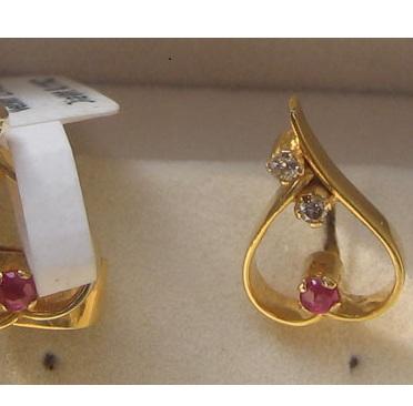 ต่างหูทองคำ 14K สีเหลืองสำหรับผู้หญิง ดีไซน์หรูหรา ประดับทับทิม เหมาะสำหรับเป็นของขวัญหมั้น แต่งงาน หรือวันครบรอบ น้ำหนัก 2.02 กรัม # 7709 เครื่องประดับ