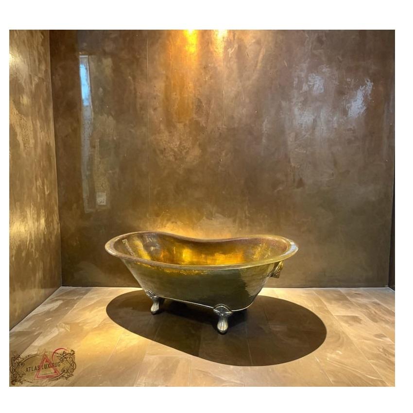 Elegant Luxury Golden Copper Clawfoot Bathtub Golden Interior Vintage Freestanding Oval Eco-Friendly Bath Tub for Hotel.