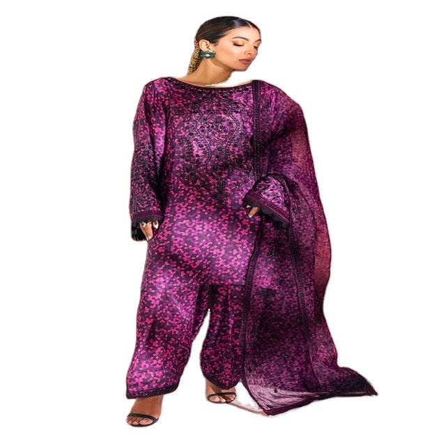 ชุดสูทผ้าชอลวาร์ Kameez หรูหราสง่างามสำหรับผู้หญิงผ้าไหมปักลายสวยงามเป็นธรรมชาติสำหรับฤดูหนาว