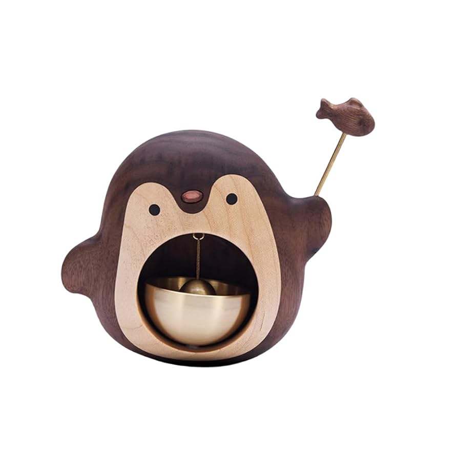 กระดิ่งทองเหลืองและไม้รูปทรงบ้าน กระดิ่งตกแต่งแขวนสำหรับทางเข้าบ้าน สำนักงาน ของตกแต่งแบบดั้งเดิม